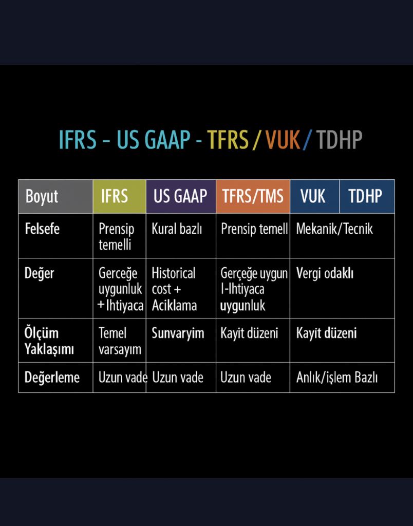 BoyutIFRSUS GAAPTFRS / TMS (Türkiye)VUKTDHPKısa ama Sert Yorum